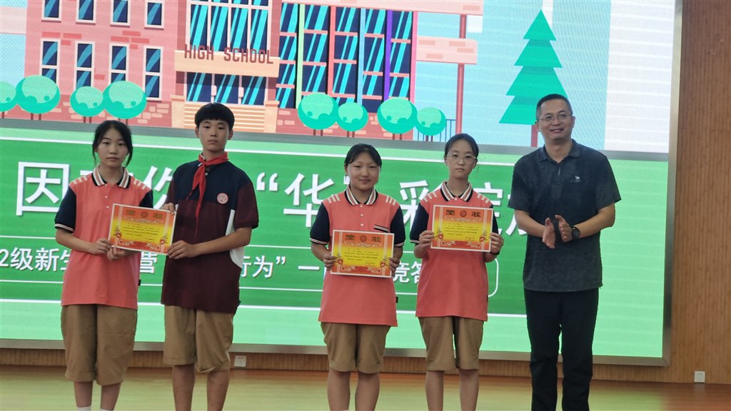 最后,蔡玉萍副校长宣布积分竞答结果和获得“团体优胜奖”的班级,王庆华校长为获奖班级代表颁发奖状并合影留念。