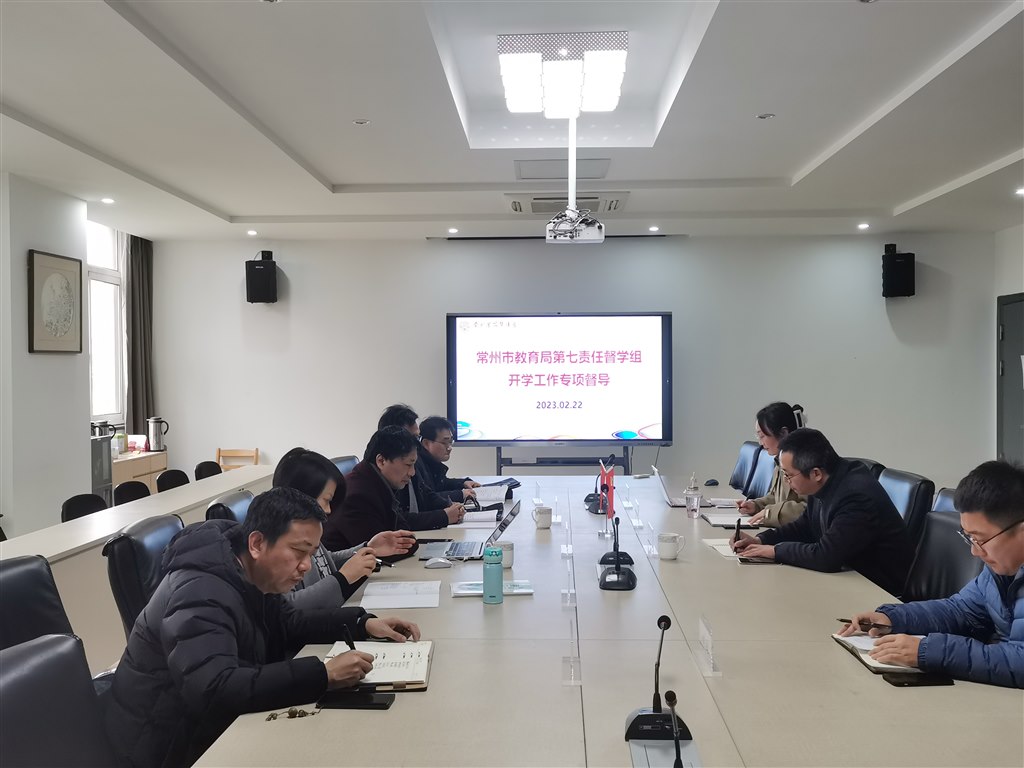 根据市教育局直属学校2022-2023学年(春季学期)责任督学挂牌督导安排,2023年2月22日下午,常州市教育局第七督学组专家鲁兴树院长、陈开和校长、路云书记、熊羲之校长、邹清虎主任一行五人,来到常州市丽华中学开展新学期首次督导工作,围绕“学期重点工作、开学工作、校园安全工作”进行了专项督导。学校党总支副书记、校长王庆华、副校长孙劼、学生处副主任李琳琳、总务处副主任傅超、办公室主任助理席梦然参加了本次督导活动。