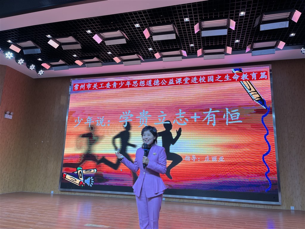 12月3日下午,丽华中学五楼报告厅内掌声阵阵、氛围热烈。常州市关心下一代工作委员会(以下简称“市关工委”)青少年思想道德公益课堂进校园活动在此隆重举行,国家二级心理咨询师、资深家庭教育指导家庄丽亚老师以“少年说:学贵立志+有恒”为题,为九年级学子带来了一场兼具思想深度与实践温度的生命教育讲座,引导青少年树立远大志向、锤炼坚毅品格,赋能健康成长。